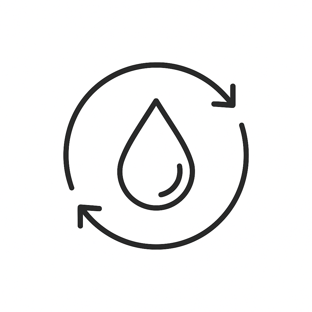 Gestion de l’eau – Notre circuit fermé permet de réutiliser l’eau à chaque étape ; nous récupérons aussi l’eau de pluie pour nos installations.